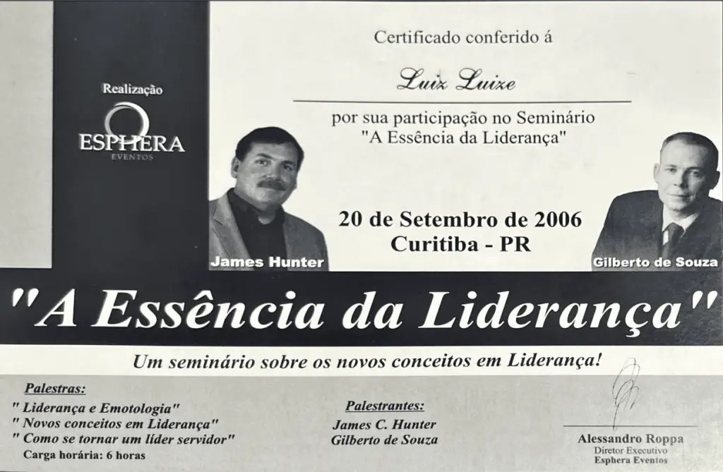 Em 20 de setembro de 2006, durante o seminário A Essência da Liderança com James Hunter, ficou ainda mais claro para mim que a liderança efetiva nasce de comportamentos, não de cargos. Hunter reforçava uma verdade simples, mas profundamente estratégica: liderar é servir — e servir é formar pessoas para performar em seu melhor nível.